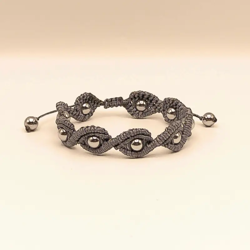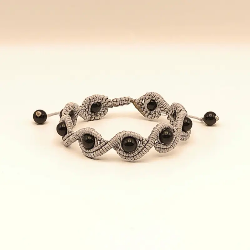 Découvrez le bracelet “Vague infinie”, une création artisanale de L'Empreinte du Chat. Ce bijou unique est fabriqué à la main avec des fils soigneusement tissés. Son design en fait un accessoire parfait pour ajouter une touche d’originalité à n’importe quelle tenue.