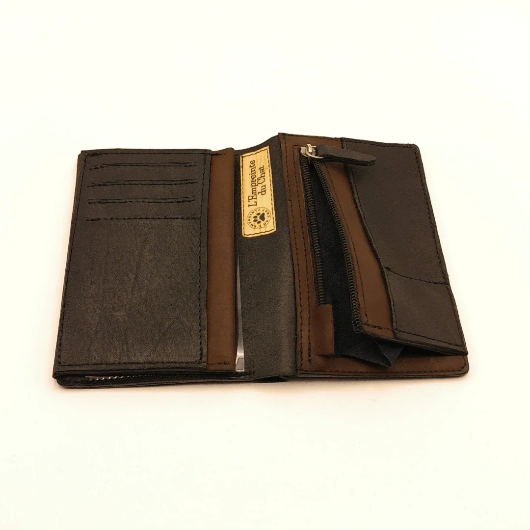 Découvrez notre Portefeuille en cuir réalisé par L'Empreinte du Chat. Fonctionnel, parfait pour votre quotidien.